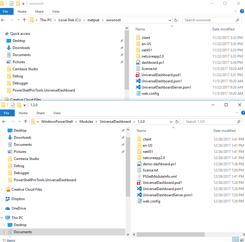 Copy the entire contents of the UniversalDashboard module to the wwwroot of the Default Web Site.